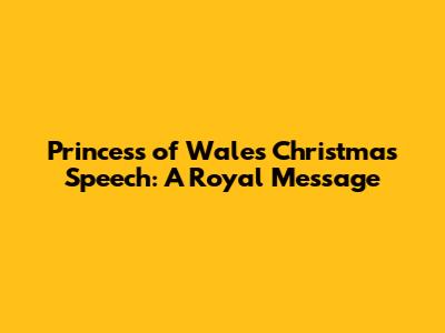 Princess Of Wales' Christmas Speech: A Royal Message