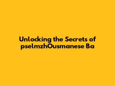 Unlocking The Secrets Of PselmzhOusmanese Ba